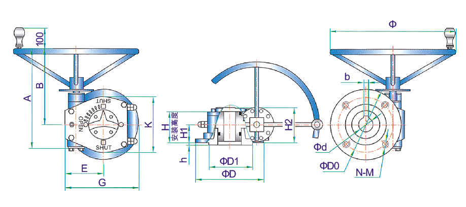 该系列外形美观,是一款90°部分回转手动驱动装置。适用于球阀、蝶阀、旋塞阀等类型阀门。箱体采用球墨精铸,手轮钢管焊接。产品自身有带锁机构,野外安装时可预防他人随意打开阀门。该系列法兰全部采用lSO5211国际标准,型号齐全,便于阀门匹配。外型美观,输出力矩大,深受国内外用户青睐,特别适用于出口型阀门。产品共有16种型号。