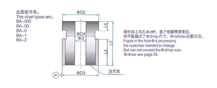 用户可根据该图加工阀杆螺母内孔的连接尺寸.加工内孔∮d时,注意与基准A的同轴度按GB1184-80.8级加工。